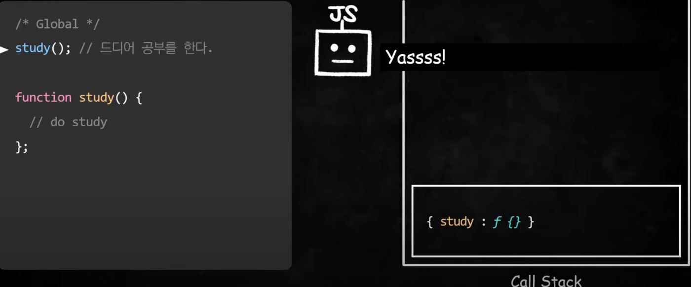 1. 함수선언문이라 선언하는 동시에 환경레코드에 생성된 함수가 통째로 기록되고