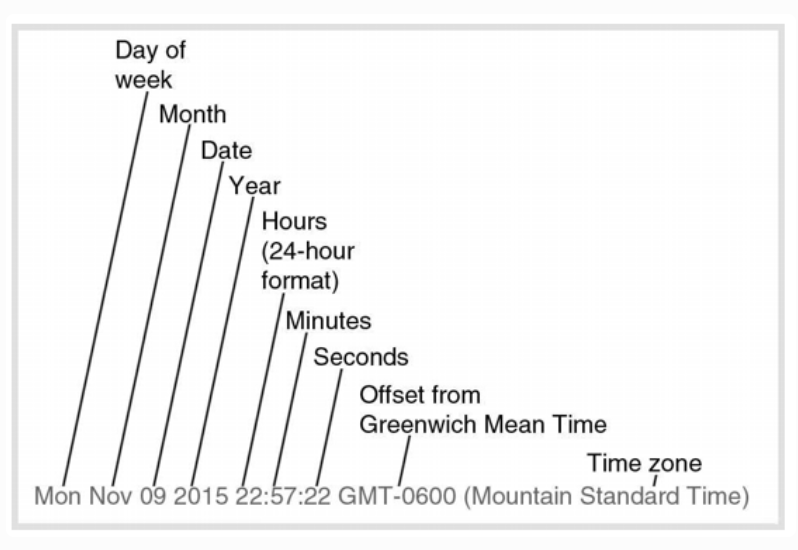 let date1 = new Date('December 17, 2019 03:24:00'); let date2 = new Date('2019-12-17T03:24:00'); let date3 = new Date(2019, 5, 1); console.log(date1); //2019-12-17T03:24:00.000Z console.log(date2); //2019-12-17T03:24:00.000Z console.log(date3); //2019-06-01T00:00:00.000Z