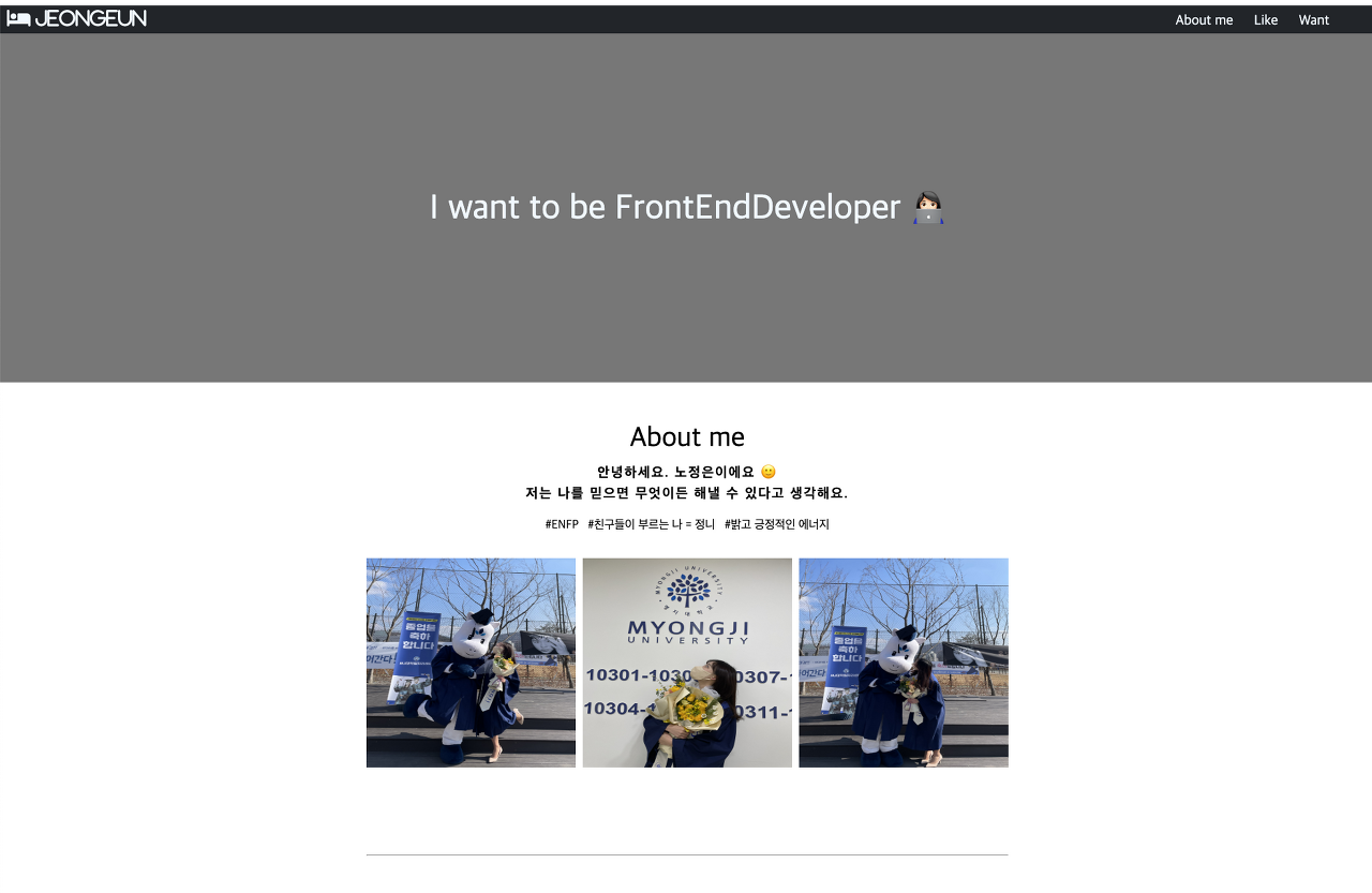 그리고 about me! 버튼을 누르면 메인페이지로 들어갈 수 있다.메인페이지